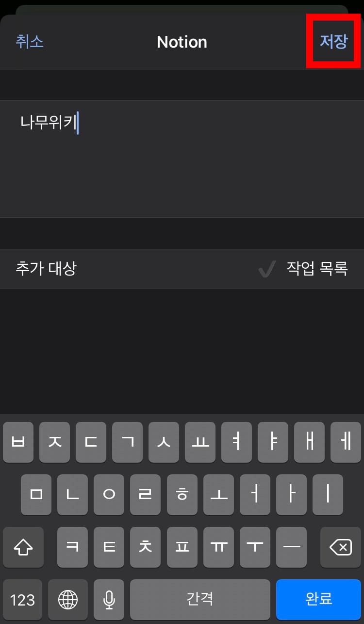 웹페이지에서는 상단의 웹 클리퍼로 링크 수집이 가능지만 모바일에선 공유 버튼을 통해서 바로 저장이 가능합니다. 공유하기 버튼을 누르시고 하단에 확인하시면 노션 앱이 있습니다. 바로 저장이 가능합니다.